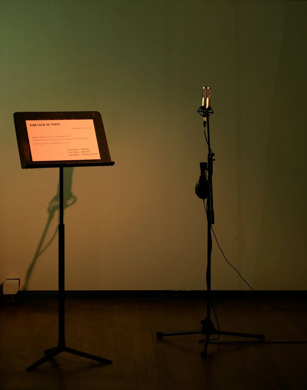 For Lack of Voice is a vocal performance and recording project based on sonic transformations of the voices of iconic singers of the 20th century.