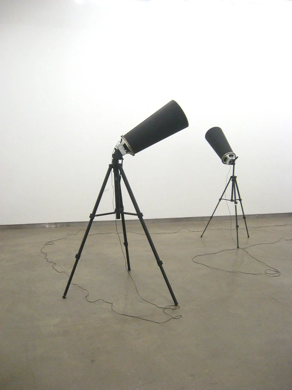 For Romantic Fantasy is a ten-minute, eight-channel sound piece made up of a collection of speakers embedded in large, handmade, black paper cones, standing on tripod legs, and emitting a chorus of female voices. These voices are composed of my attempts to vocally replicate an increasingly time-stretched recording of the 1937 Walt Disney song “Some Day My Prince Will Come” (as sampled from a Hallmark audio greeting card). One speaker plays my vocal replication, the next plays an attempt to replicate my own replication, and so on, creating a cascade of non-digital delays through seven generations of attempts and false starts.